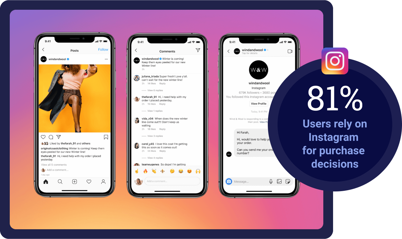 Identify and prioritize Instagram users who need help or want to make a purchase. LivePerson’s AI-powered analytics, Instagram chatbot, and other automation and messaging tools let you interact 1:1 with consumers in the moment, whether for an in-channel transaction or to resolve an inquiry.